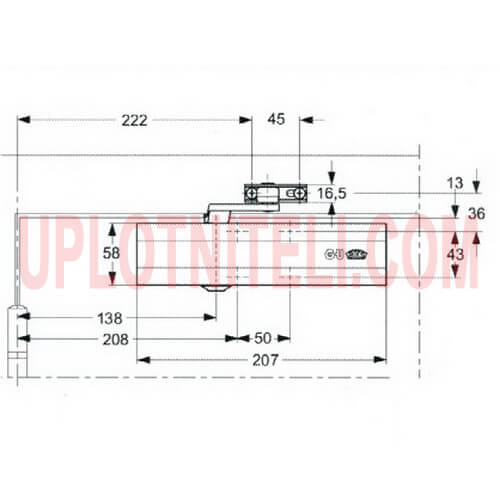 У комплект поставки OTS 210 входить: сам доводчик GU 210 (GU Door Closer), колінна (важільна тяга), набір для кріплення, передня кришка, схема монтажу з розміткою отворів.