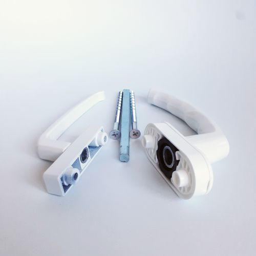 Для установки двусторонней ручки для балконной двери потребуется дрель, отвертка и два сверла: диаметром 8мм (для винтов) и 10мм (для штифта). Может также понадобится ножовка по металлу, чтобы уменьшить длину штифта ручки, но это случается нечасто.