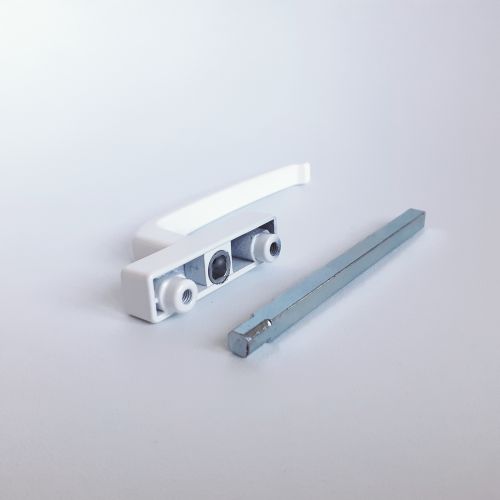 - Делаем примерку ручек без привода. Бывает, что штифт двусторонней ручки балконной двери (металлический квадрат сечением 7х7мм) делают длиннее, чем нужно вашей двери. И винты могут быть длиннее, чем нужно. Ножовкой по металлу обрежьте штифт до нужной длины (семь раз отмерь!). После примерки вынимаем ручки и ставим их в положение “открыто”.
